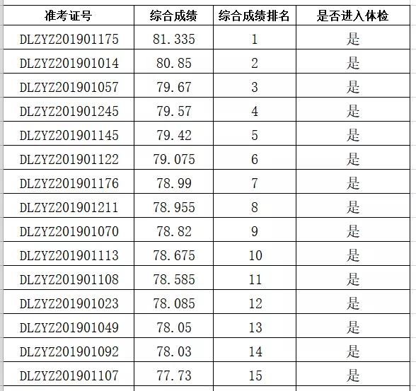 大理市2019—2020年度西部計劃地方項目招募考試進入體檢人員名單公示