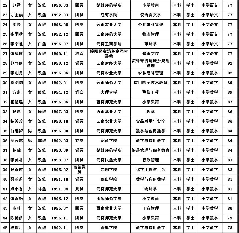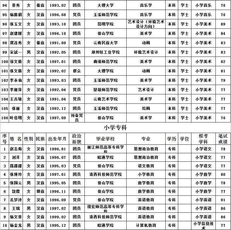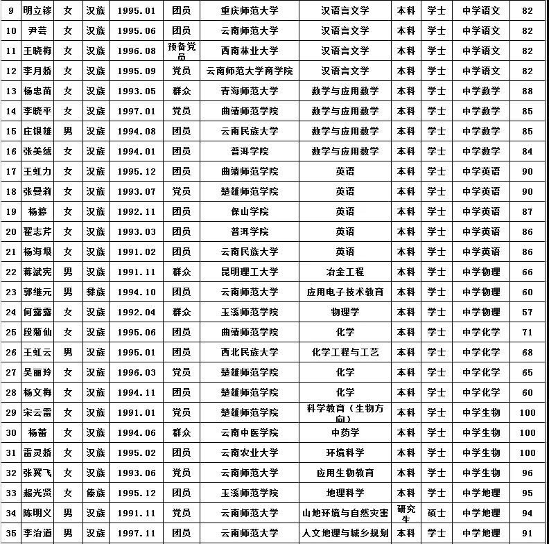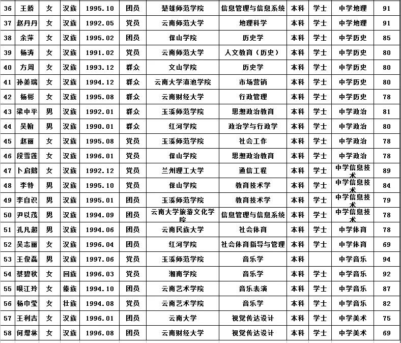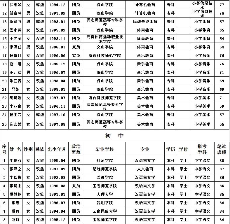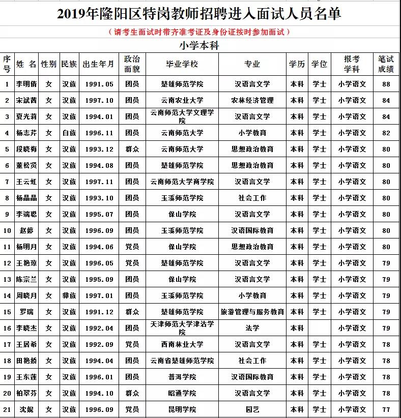 附:《2019年隆陽(yáng)區(qū)特崗教師招聘進(jìn)入面試人員名單》
