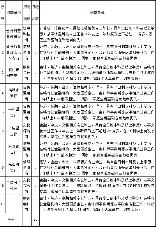 招聘單位包括部分二級(jí)分行和縣級(jí)支行,招聘崗位共有10個(gè),具體詳情請見下表。
