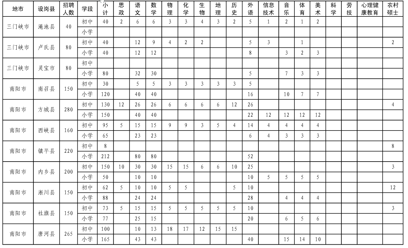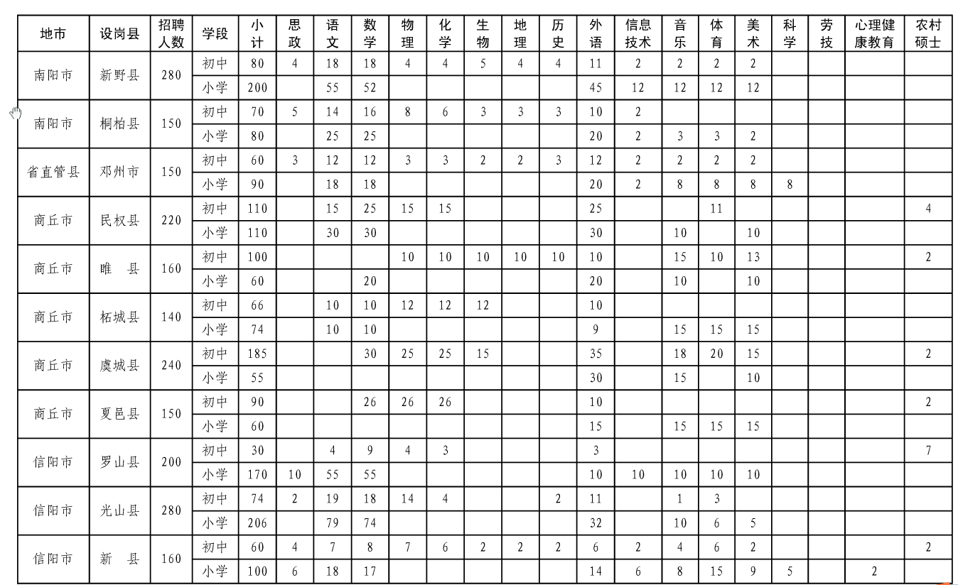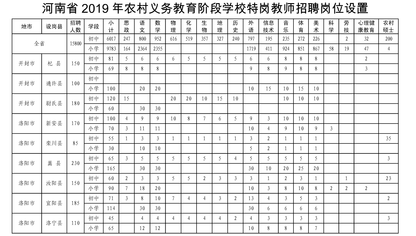 河南省2019年農(nóng)村義務(wù)教育階段學(xué)校特崗教師招聘崗位設(shè)置一覽表
