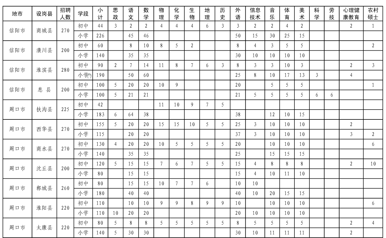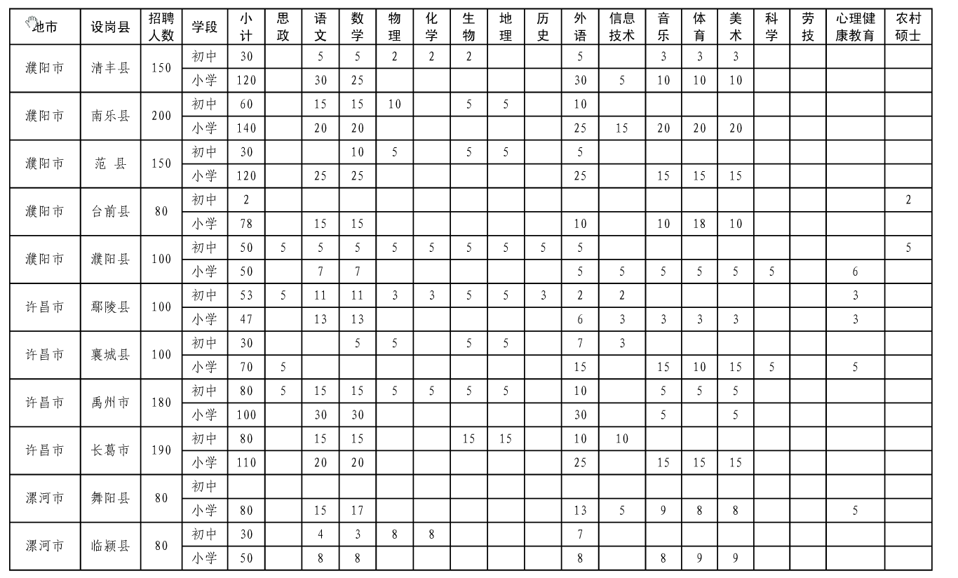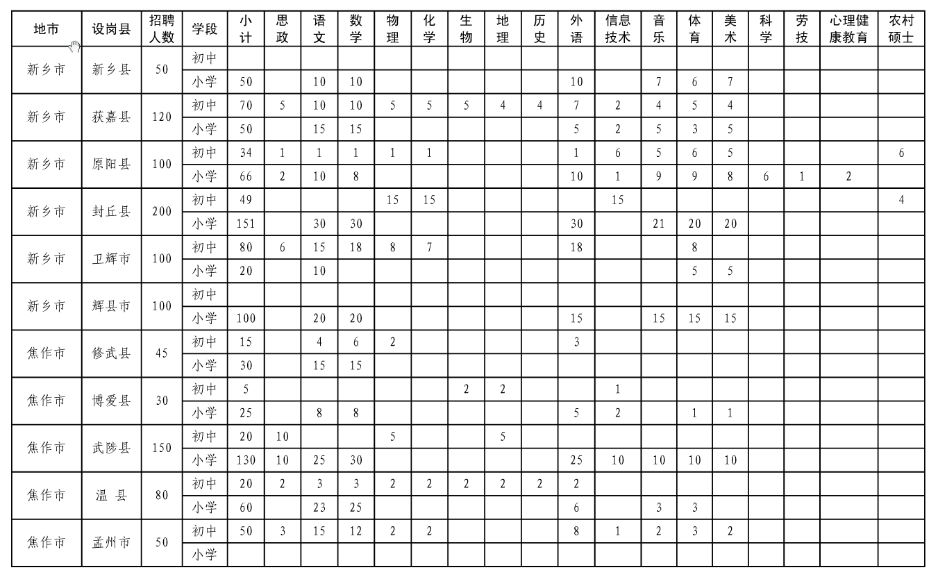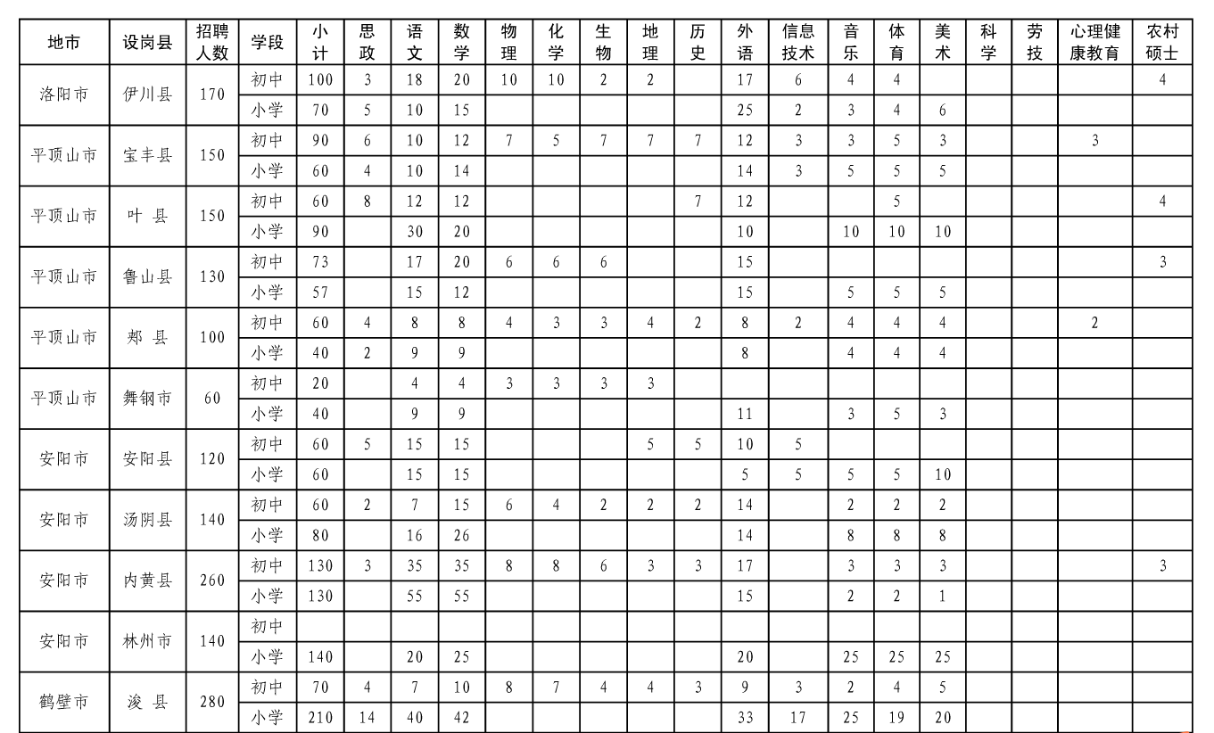 河南省2019年農(nóng)村義務(wù)教育階段學(xué)校特崗教師招聘崗位設(shè)置一覽表