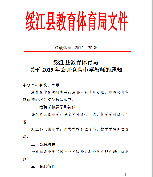 綏江縣教育體育局2019年競聘小學(xué)教師通知