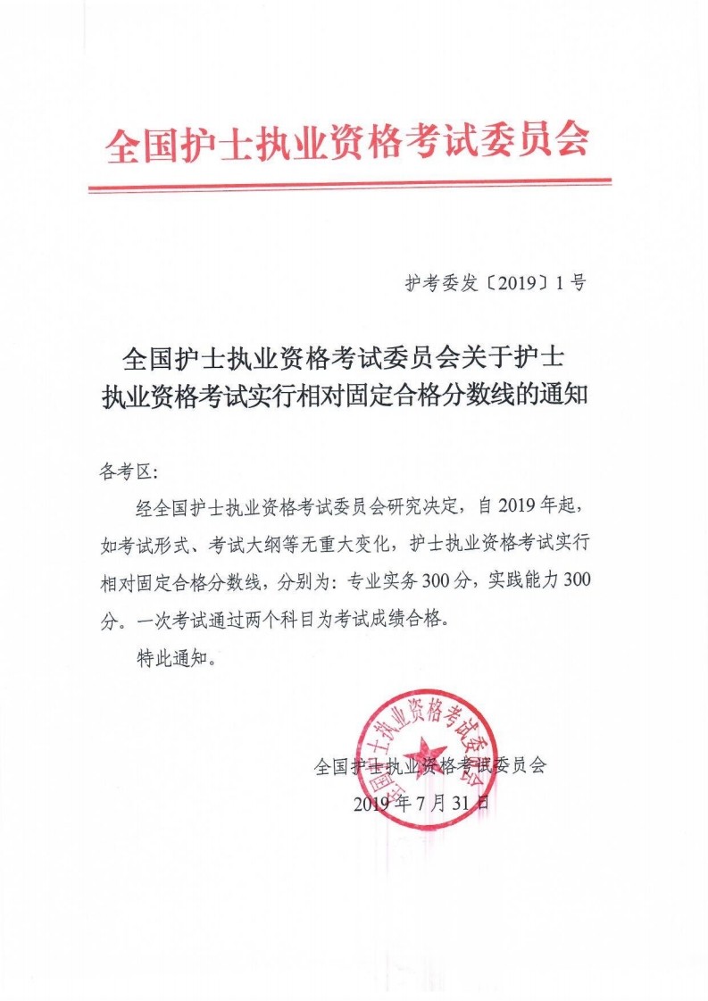 關(guān)于護(hù)士執(zhí)業(yè)資格考試實(shí)行相對固定合格分?jǐn)?shù)線的通知