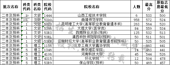 楚雄師范學(xué)院近三年省內(nèi)分專