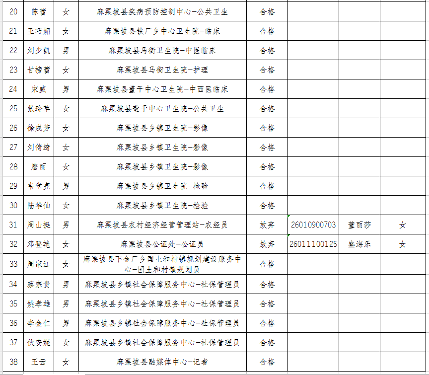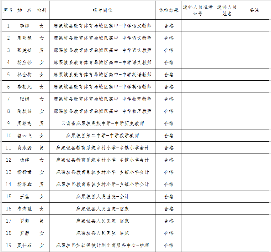 2019年麻栗坡縣事業(yè)單位公開招聘工作人員體檢結(jié)果通告
