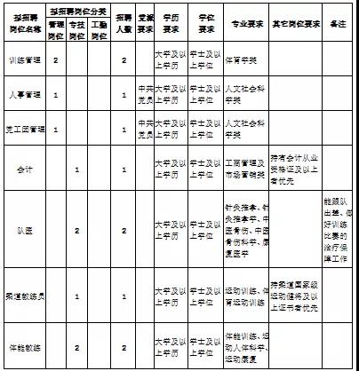 云南省體育工作大隊(duì)系省體育局下屬的主要從事專項(xiàng)競(jìng)技體育運(yùn)動(dòng)訓(xùn)練的省級(jí)全額撥款事業(yè)單位。根據(jù)《云南省事業(yè)單位公開(kāi)招聘工作人員辦法》(云人社發(fā)〔2016〕182號(hào))等有關(guān)文件規(guī)定,結(jié)合工作需要,經(jīng)云南省人力資源和社會(huì)保障廳批準(zhǔn),云南省體育工作大隊(duì)2019年計(jì)劃面向社會(huì)公開(kāi)招聘工作人員10名,先將有事宜公告如下: