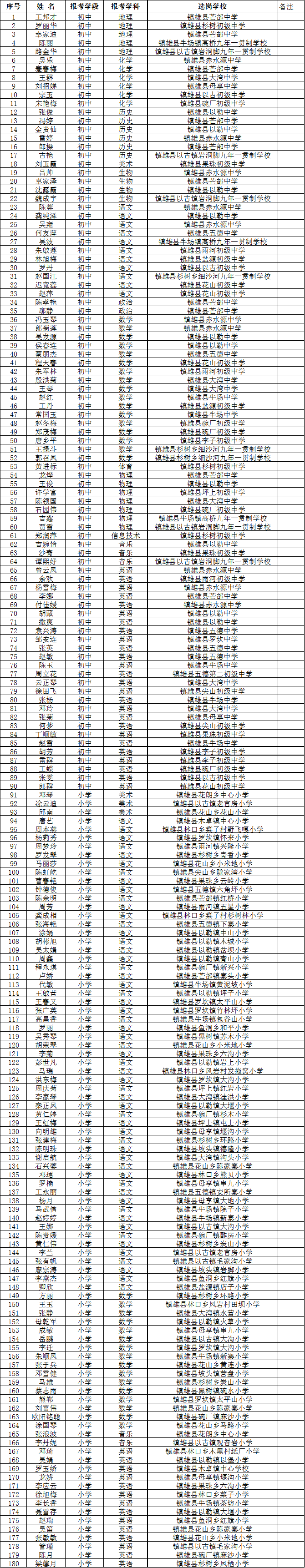 鎮(zhèn)雄縣2019年擬聘特崗考生情況公示