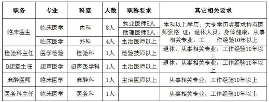目前正在籌備開(kāi)業(yè)中,醫(yī)院為培養(yǎng)選配人才,特面向全?。ㄊ校┱衅父黝惾瞬湃缦拢?/p>