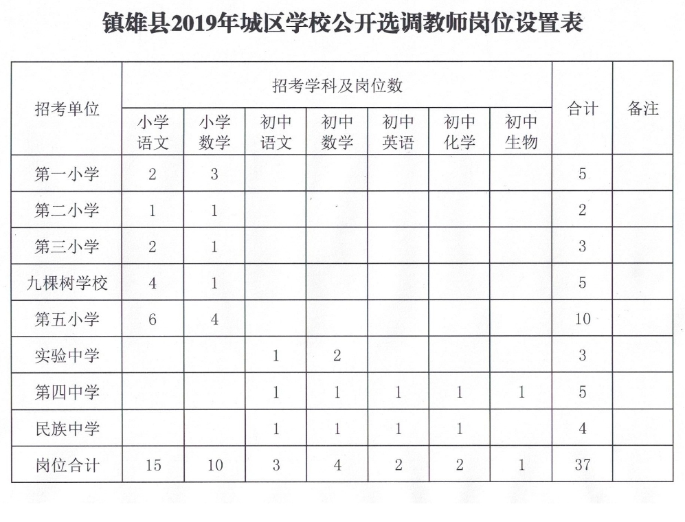 附:鎮(zhèn)雄縣2019年城區(qū)學(xué)校公開(kāi)選調(diào)教師崗位設(shè)置表