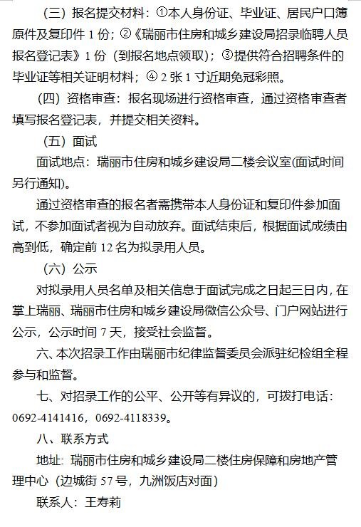 瑞麗市住建局公開招聘12名臨聘工作人員