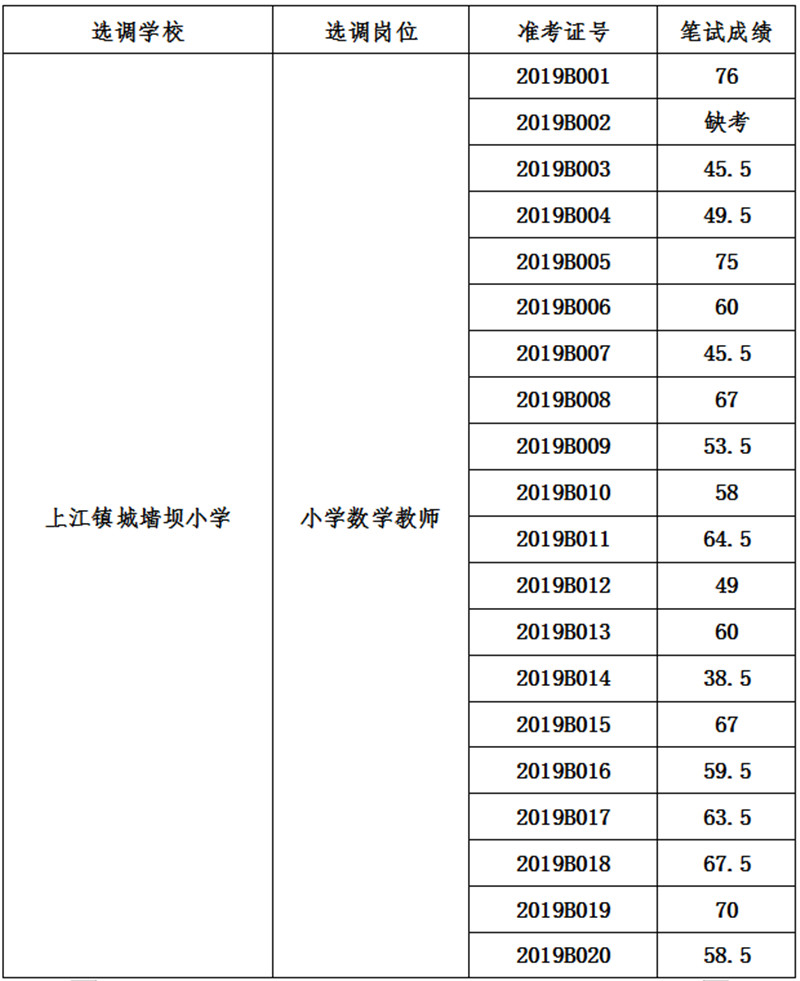 瀘水市2019年公開選調(diào)教師筆試成績公示
