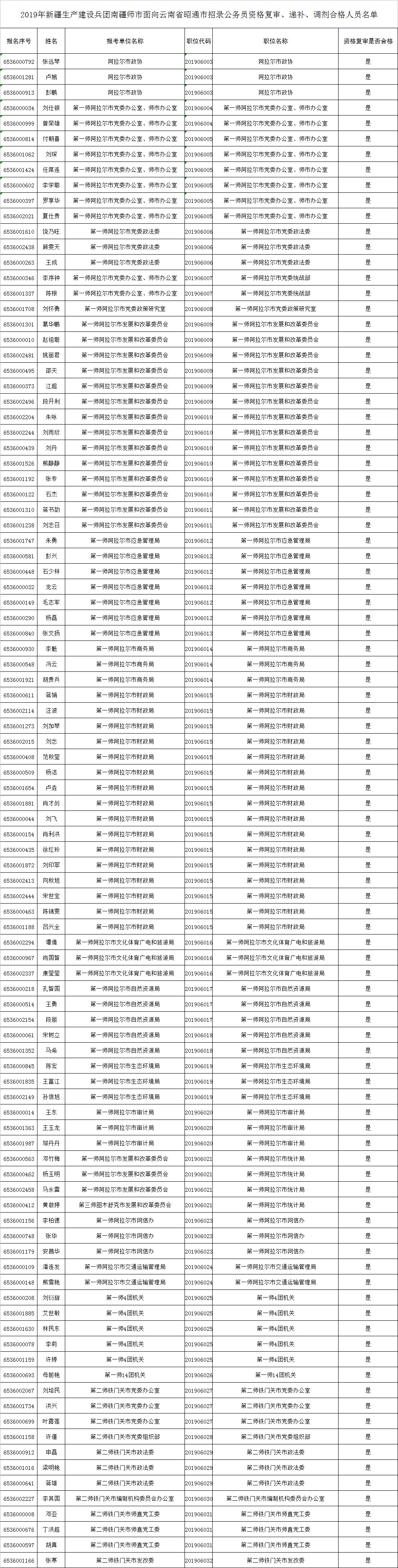 2019年新疆生產(chǎn)建設(shè)兵團(tuán)南疆師市面向昭通市招錄公務(wù)員資格復(fù)審、遞補(bǔ)、調(diào)劑名單