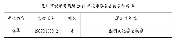 昆明市城市管理局2019年擬遴選公務(wù)員人選公示