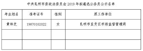 中共昆明市委政法委員會2019年擬遴選公務員人選公示