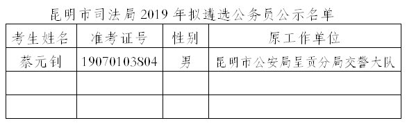 昆明市司法局2019年擬遴選公務(wù)員人選公示