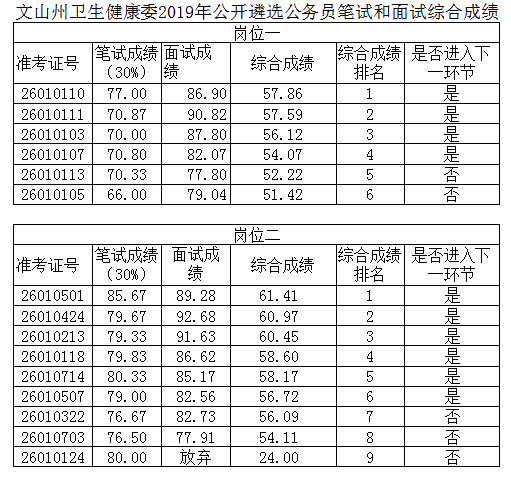 文山州衛(wèi)生健康委員會2019年公開遴選公務(wù)員筆試和面試綜合成績公布及體檢有關(guān)事項的通知