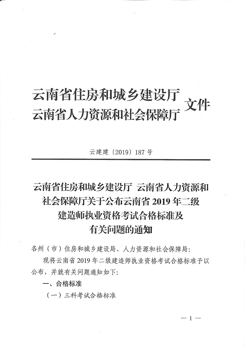 關(guān)于公布云南省2019年二級(jí)建造師執(zhí)業(yè)資格考試合格標(biāo)準(zhǔn)及有關(guān)問題的通知
