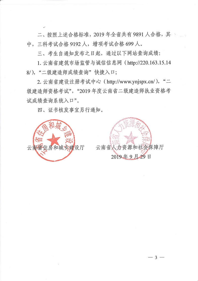 云南省2019年二級(jí)建造師執(zhí)業(yè)資格考試合格標(biāo)準(zhǔn)通知