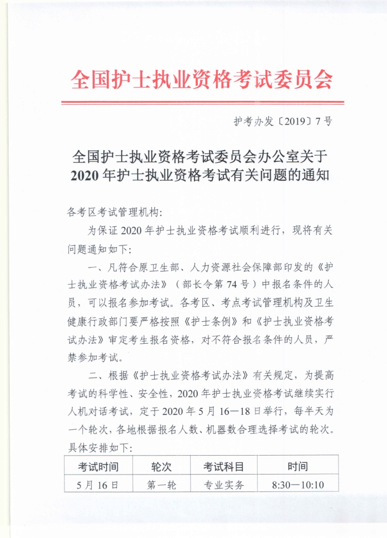 關(guān)于2020年護(hù)士執(zhí)業(yè)資格考試有關(guān)問題的通知