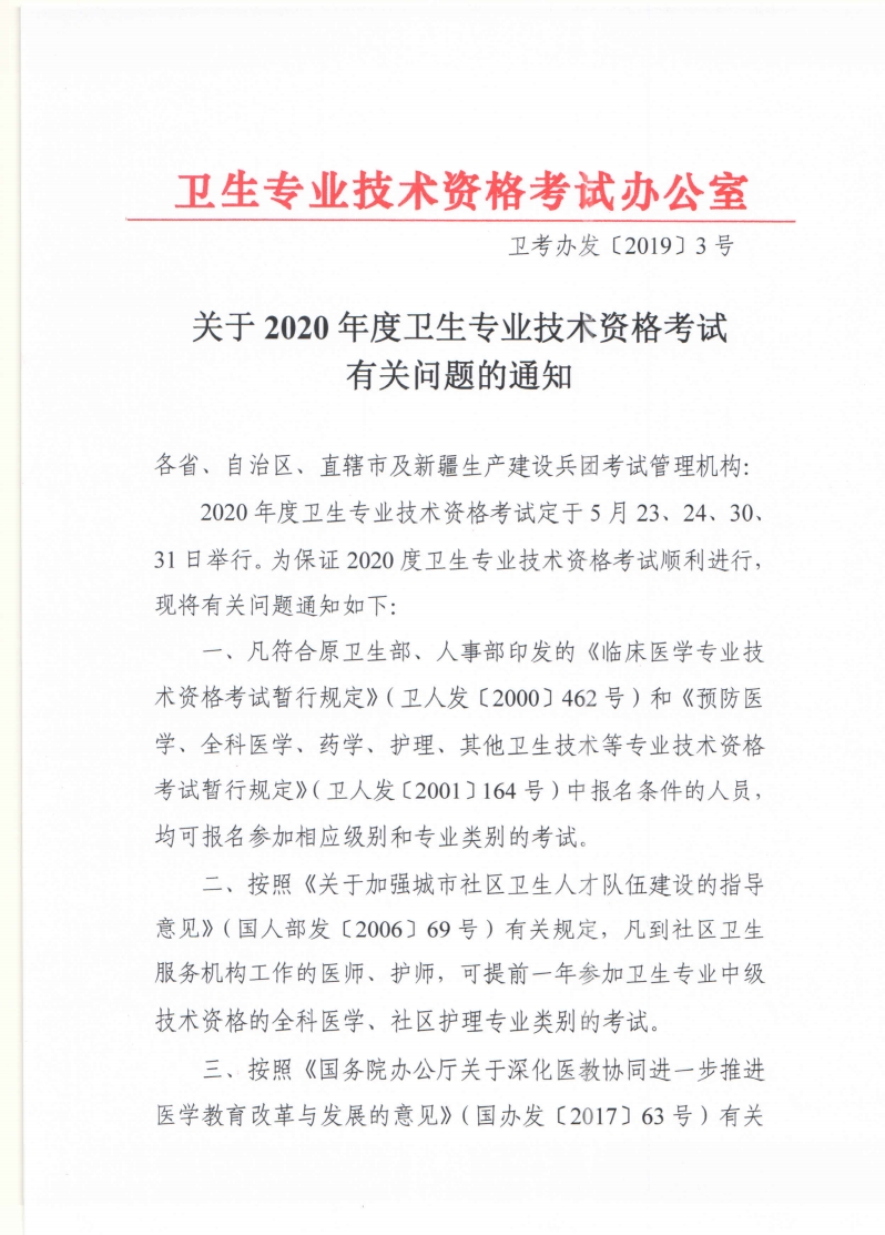 關(guān)于2020年度衛(wèi)生專業(yè)技術(shù)資格考試有關(guān)問題的通知