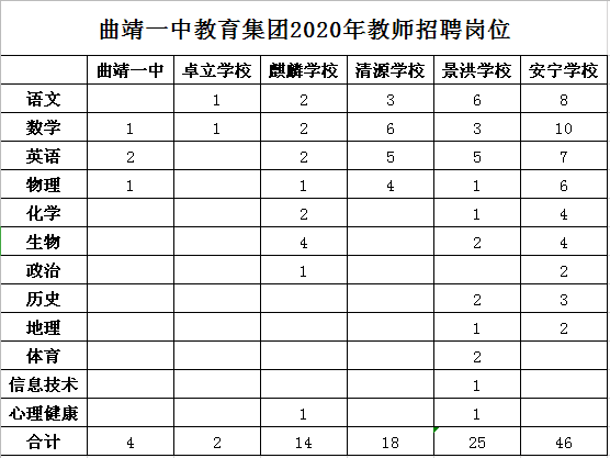 云南省曲靖一中教育集團(tuán)第五次公開(kāi)招聘2020年教師的公告