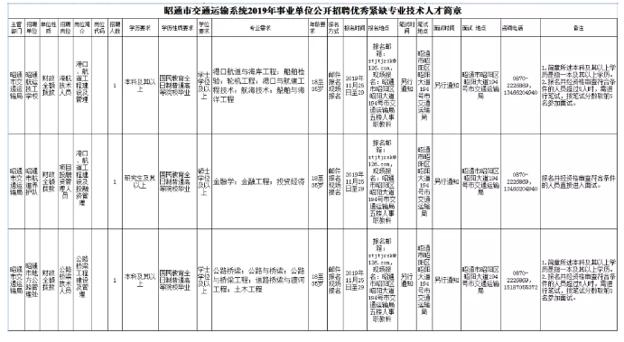 1.昭通市交通運(yùn)輸系統(tǒng)2019年事業(yè)單位公開招聘優(yōu)秀緊缺專業(yè)技術(shù)人才簡章