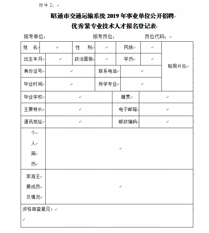 2.昭通市交通運(yùn)輸系統(tǒng)2019年事業(yè)單位公開招聘優(yōu)秀緊專業(yè)技術(shù)人才報(bào)名登記表