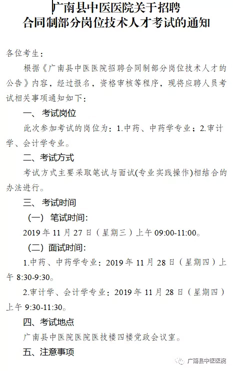 2019年文山州廣南縣中醫(yī)醫(yī)院招聘通知