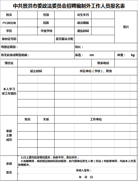 附件:1.中共景洪市委政法委員會(huì)招聘編制外工作人員報(bào)名表