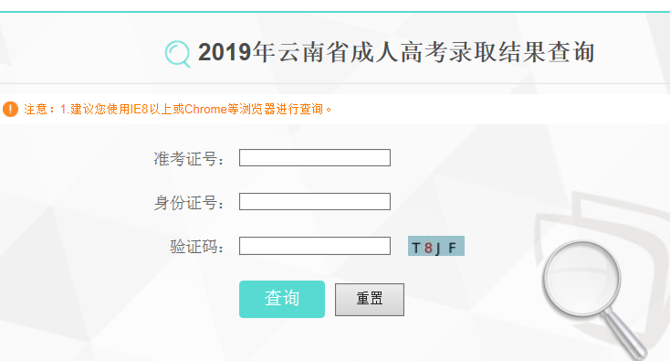 2019年云南省成人高考錄取結(jié)果查詢?nèi)肟冢篽ttps://www.ynzs.cn/score/crgk2019result.html