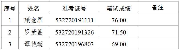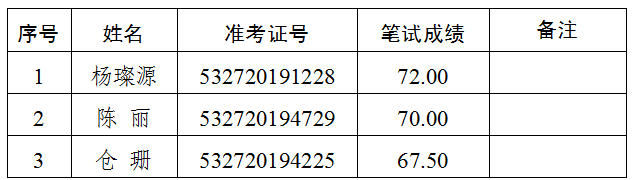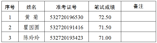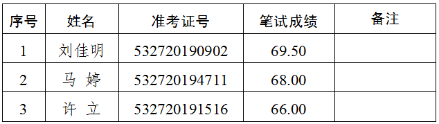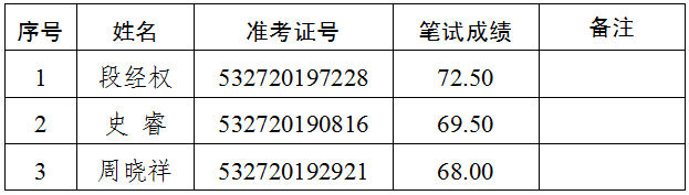 2.遞補(bǔ)情況:報(bào)考綜合文秘崗位(崗位代碼A004004),準(zhǔn)考證號(hào)碼532720194322號(hào)的考生,筆試成績69.50分,該崗位排名并列第一。經(jīng)再次資格審核,該考生不符合遴選崗位要求,取消面試及后續(xù)的遴選程序。按照普洱市中級(jí)人民法院2019年公開遴選公務(wù)員公告(第1號(hào)),遞補(bǔ)該崗位第四名考生(準(zhǔn)考證號(hào):532720191516)進(jìn)入面試。