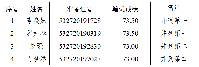 根據(jù)《普洱市政務(wù)服務(wù)管理局2019年公開遴選公務(wù)員公告(第1號(hào))》,普洱市政務(wù)服務(wù)管理局于2019年12月7日開展了“鄉(xiāng)科級(jí)副職職位(職位代碼A013001)”和“一級(jí)科員職位(職位代碼A013002)”公開遴選的筆試工作?,F(xiàn)將有關(guān)事項(xiàng)公告如下: