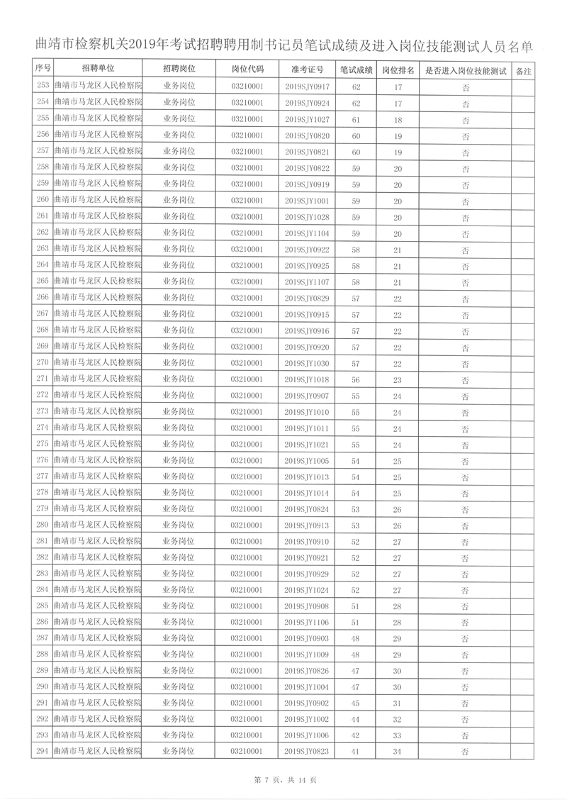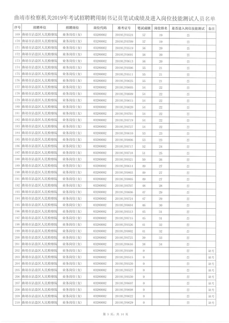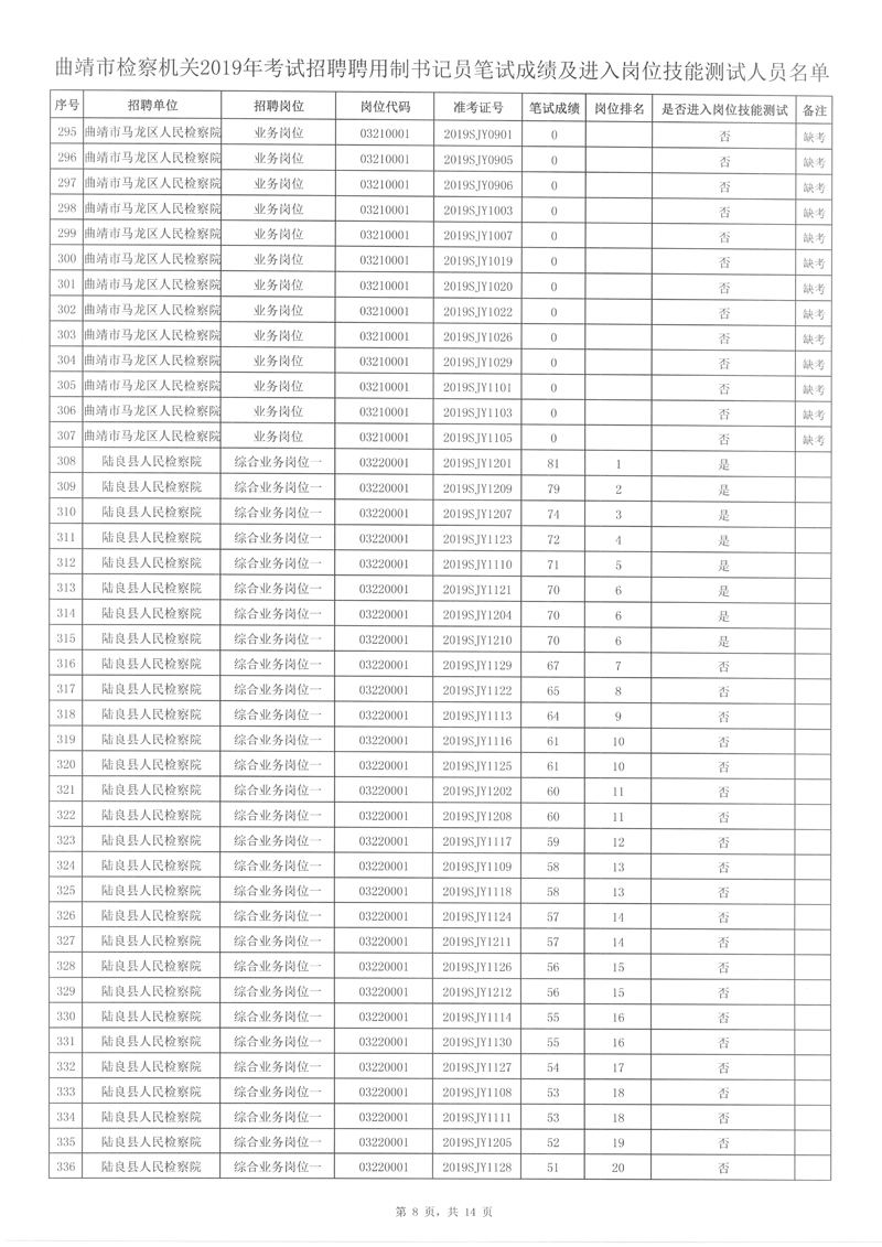 4、曲靖市檢察機關(guān)2019年考試招聘聘用制書記員筆試成績及進入崗位技能測試人員名單詳見附件。