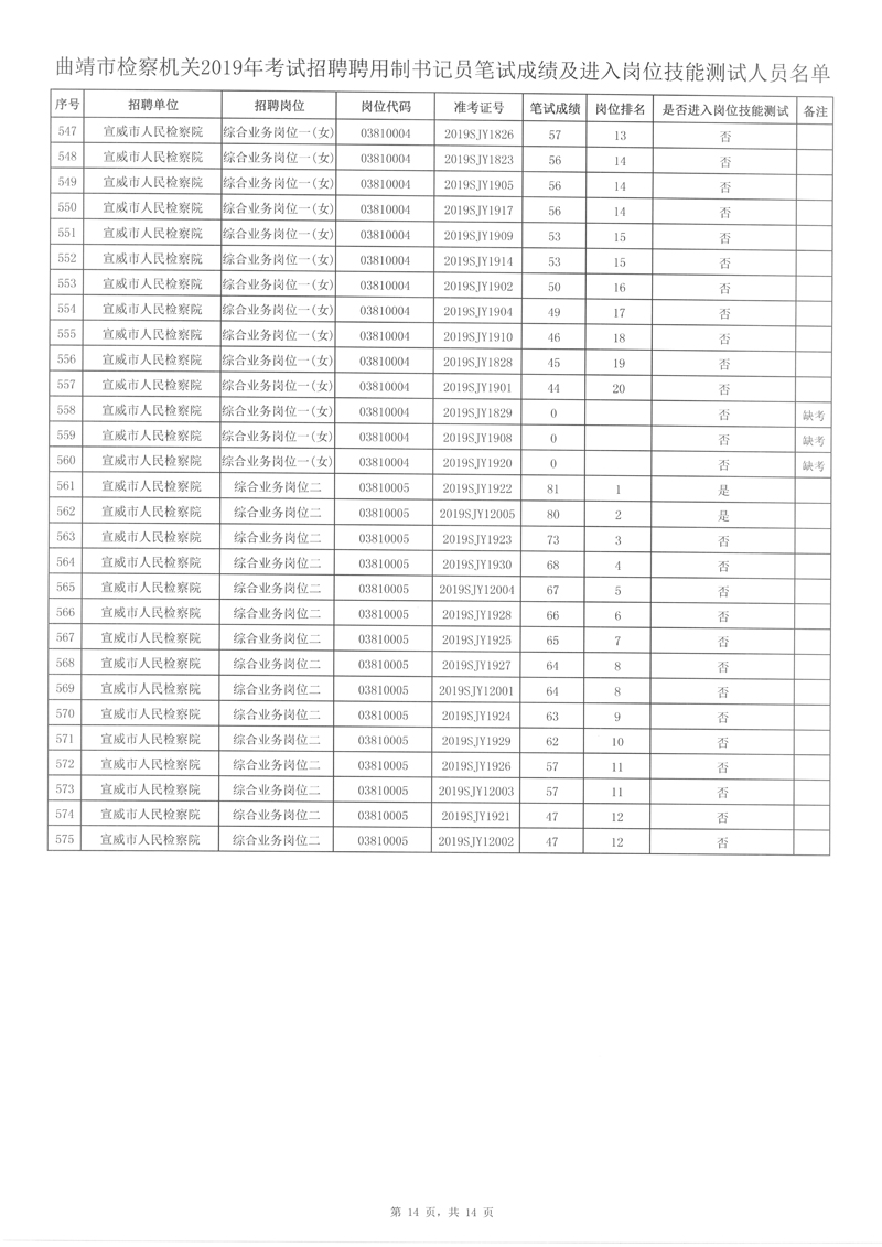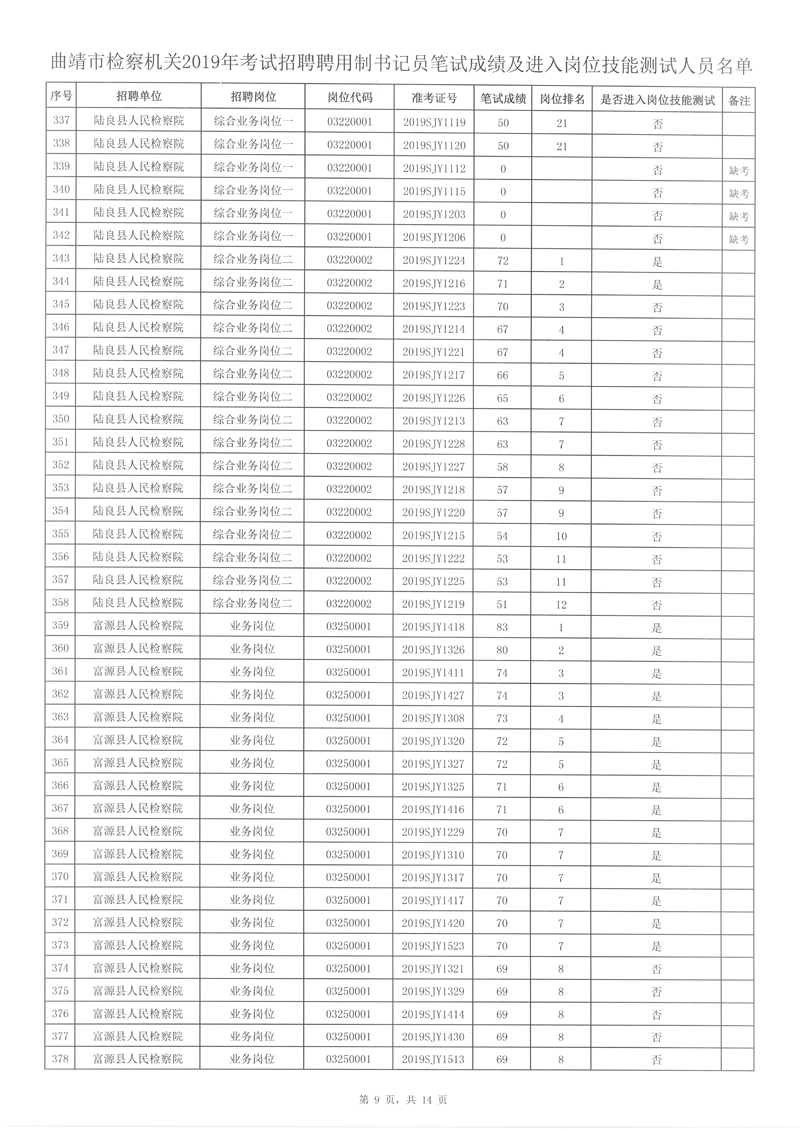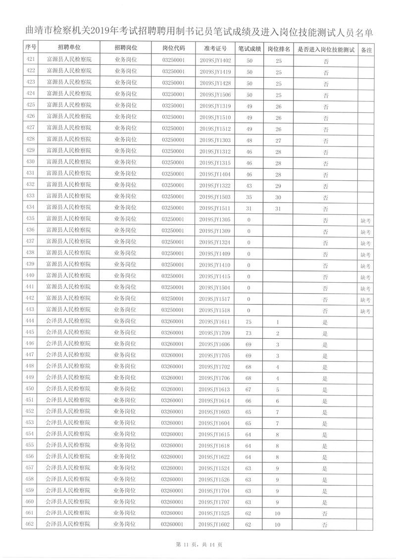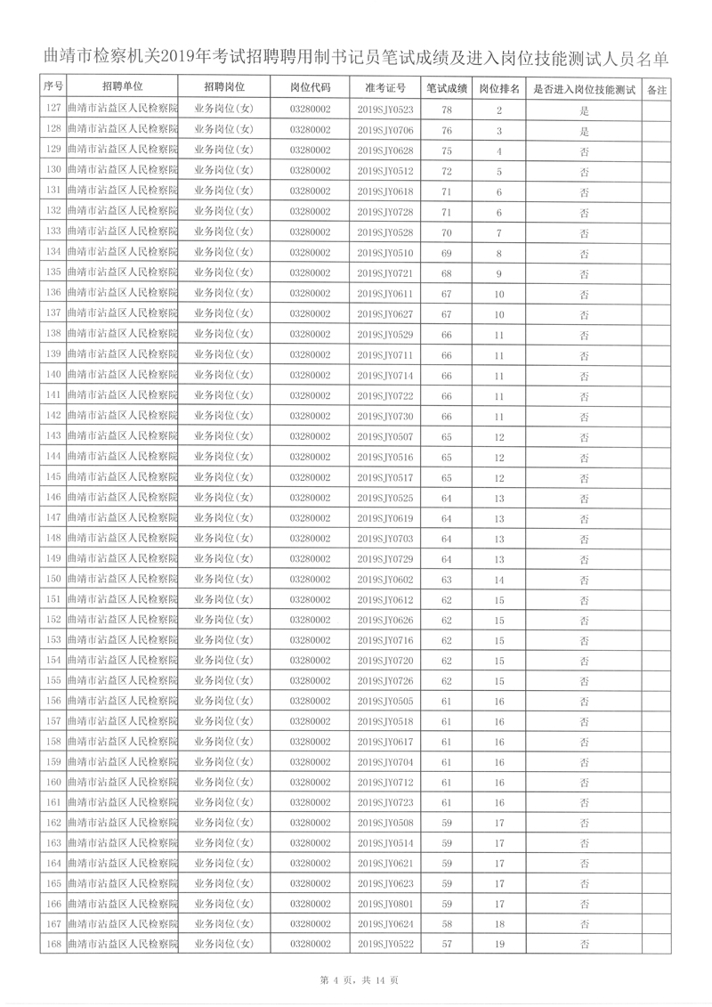4、曲靖市檢察機關(guān)2019年考試招聘聘用制書記員筆試成績及進入崗位技能測試人員名單詳見附件。