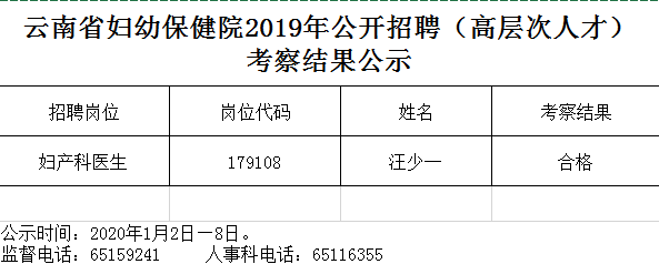 云南省婦幼保健院2019年公開招聘(高層次人才) 考察結果公示 來源:http://www.ynfybj.com/index/notice/article?id=8839