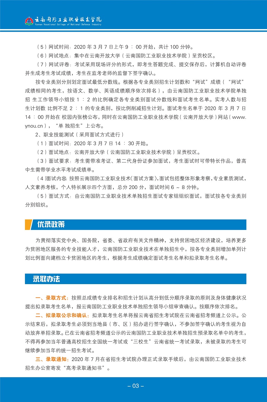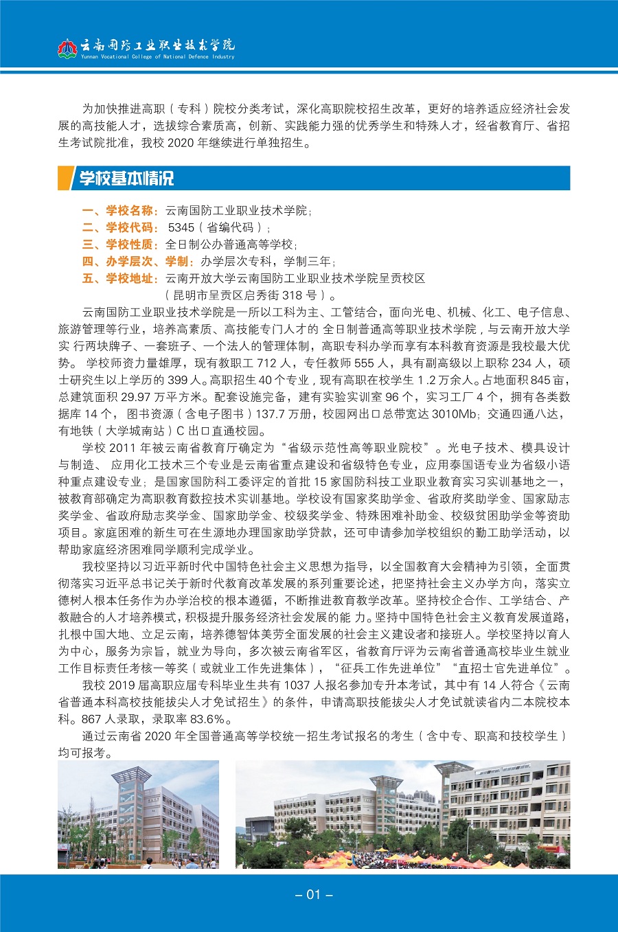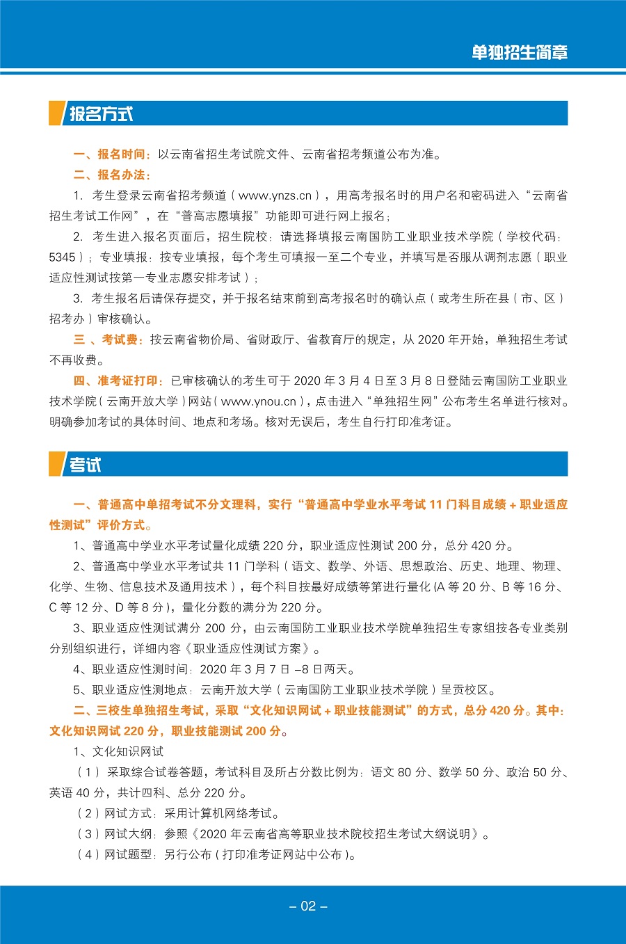 云南國(guó)防工程職業(yè)學(xué)院2020單獨(dú)招生簡(jiǎn)章