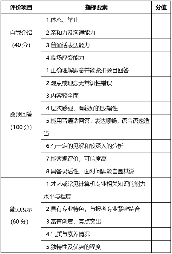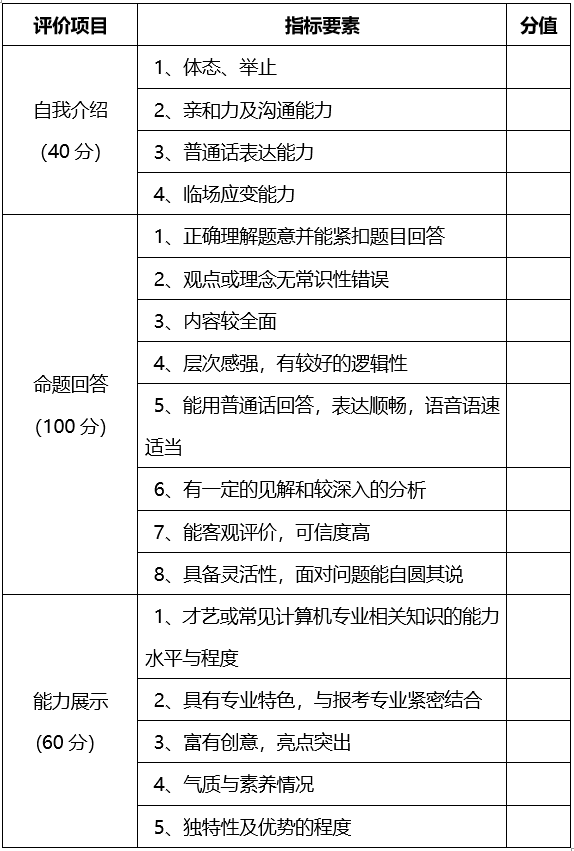 實行“文化知識(機考)+職業(yè)技能測試(面試)”的評價方式,總分420分。