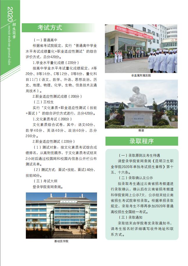 昆明衛(wèi)生職業(yè)學(xué)院2020年單獨(dú)考試招生簡章