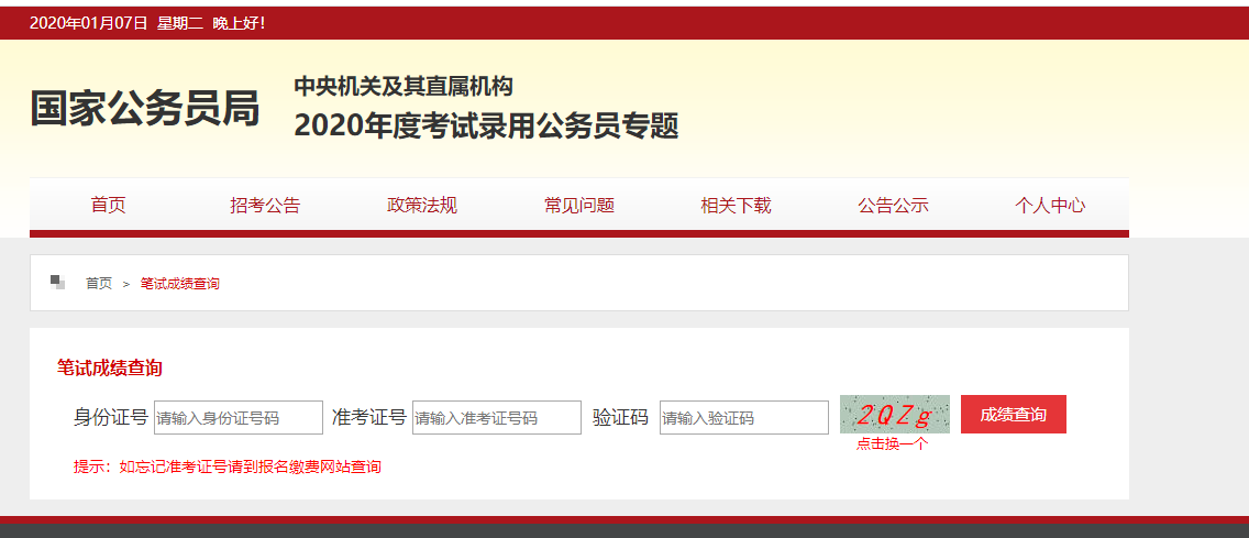 2020年國考成績查詢?nèi)肟?/strong>