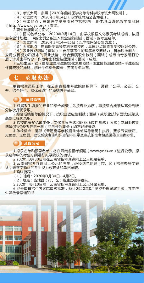 2020年曲靖醫(yī)學(xué)高等??茖W(xué)校單獨(dú)考試招生簡章