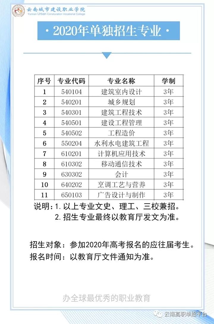云南城市建設(shè)職業(yè)學(xué)院2020年三年制大