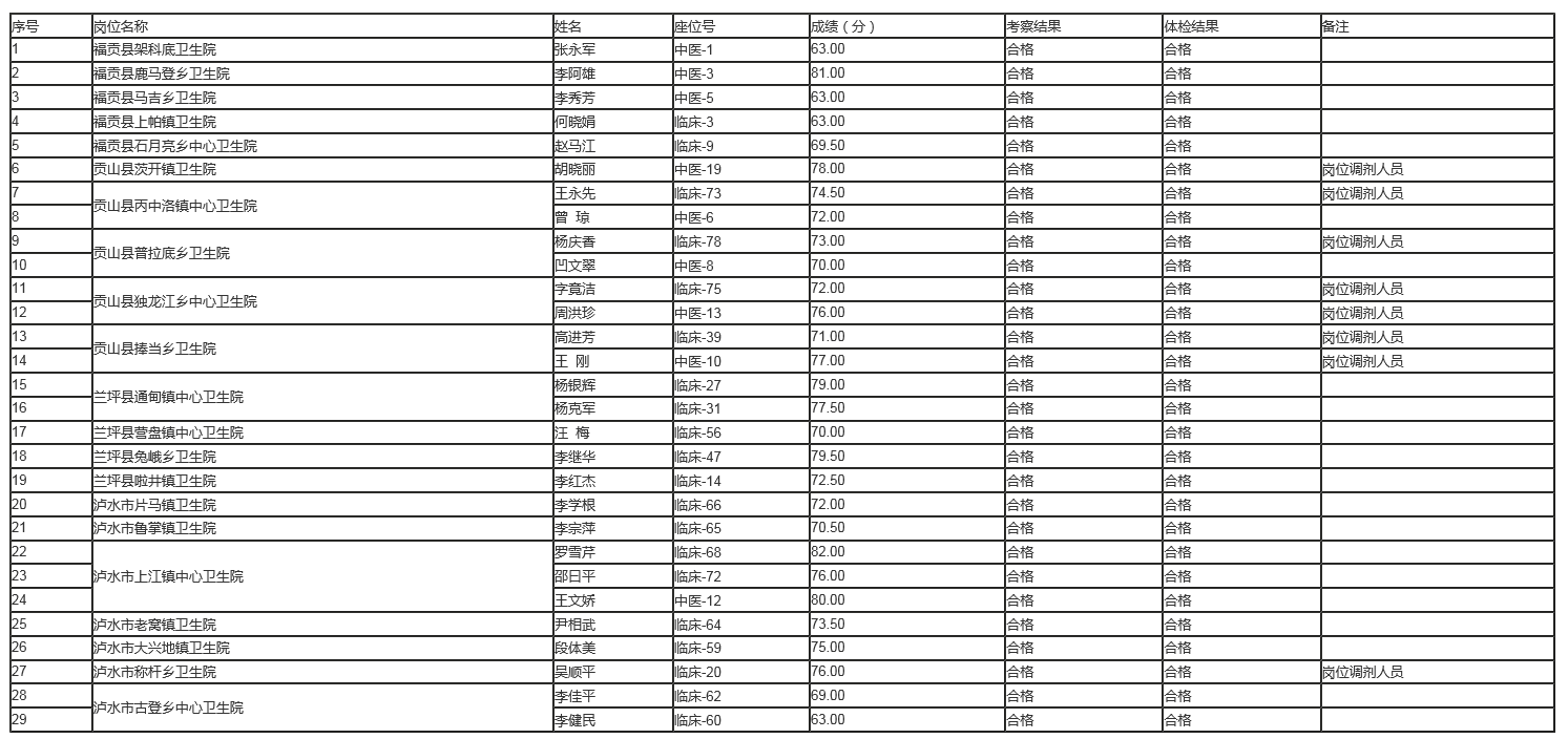 2019年怒江州第二批全科醫(yī)生特設崗位招聘擬聘人員公示