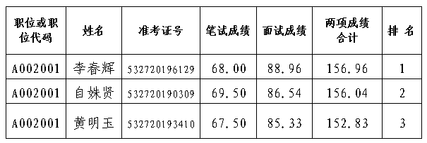 根據(jù)《中共普洱市委宣傳部2019年公開遴選公務(wù)員公告》(第1號),市委宣傳部已完成筆試、面試、經(jīng)歷業(yè)績評價(jià)工作?,F(xiàn)將有關(guān)事項(xiàng)公告如下: