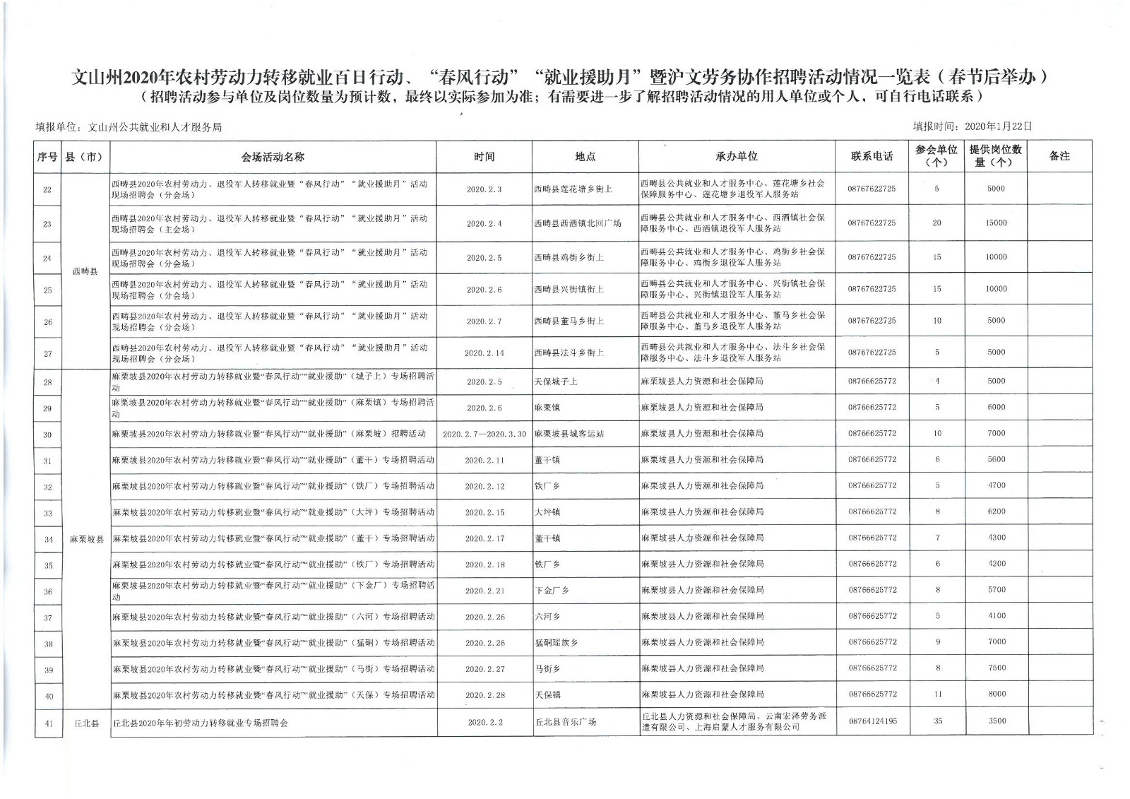 “春風行動”“就業(yè)援助月”暨滬文勞務(wù)協(xié)作招聘會情況一覽表