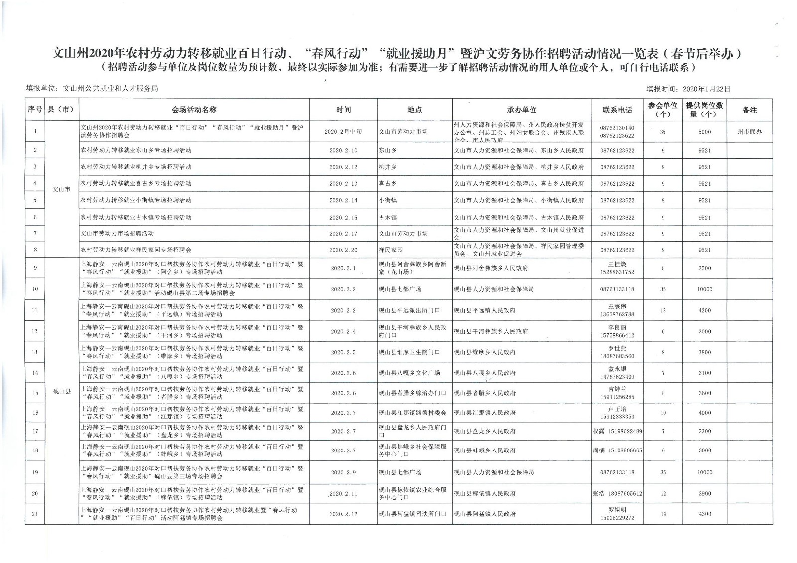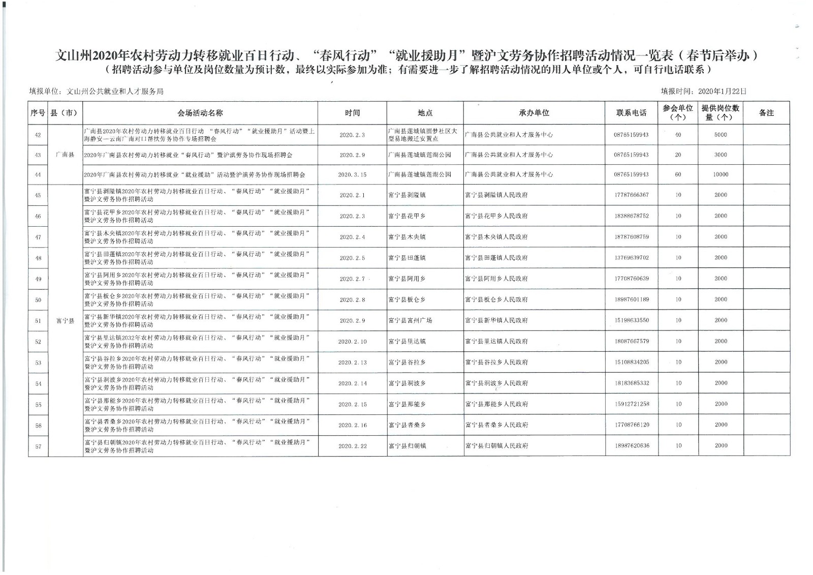 文山州2020年農(nóng)村勞動力轉(zhuǎn)移就業(yè)、“春風行動”“就業(yè)援助月”暨滬文勞務(wù)協(xié)作招聘會情況一覽表 .xls