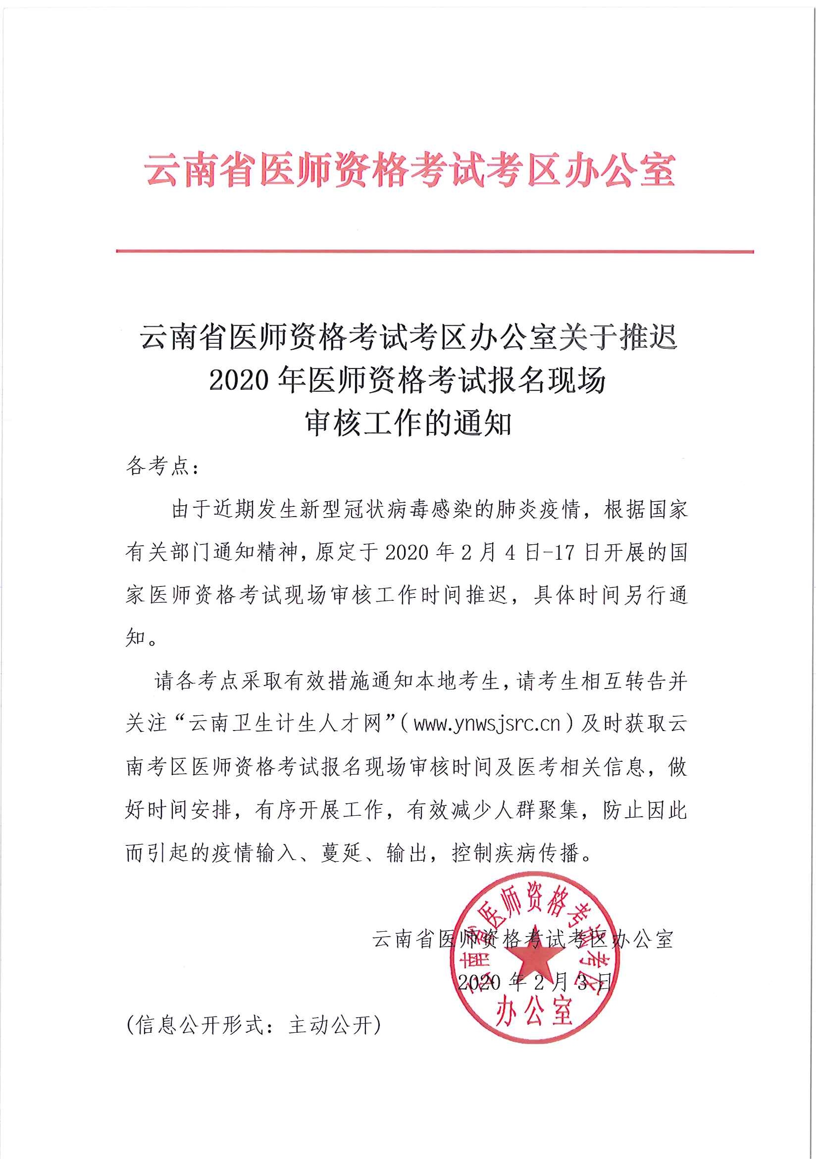 云南省推遲2020年醫(yī)師資格考試報(bào)名現(xiàn)場(chǎng)審核工作通知