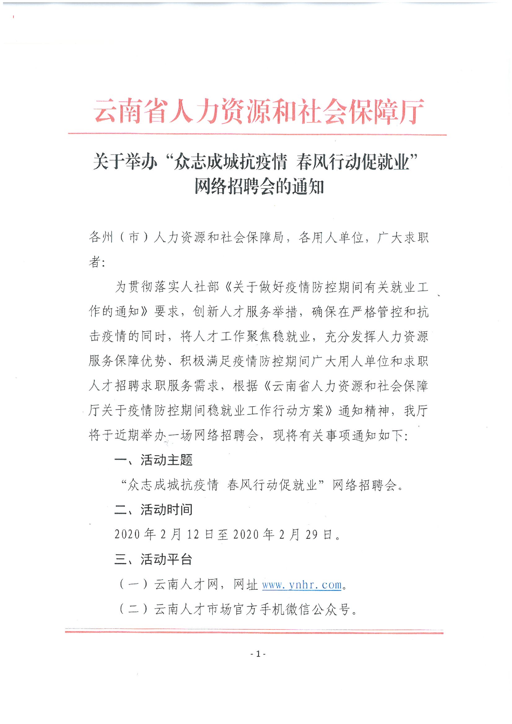 2020年文山州舉辦“眾志成城抗疫情_春風行動促就業(yè)”網(wǎng)絡招聘會通知
