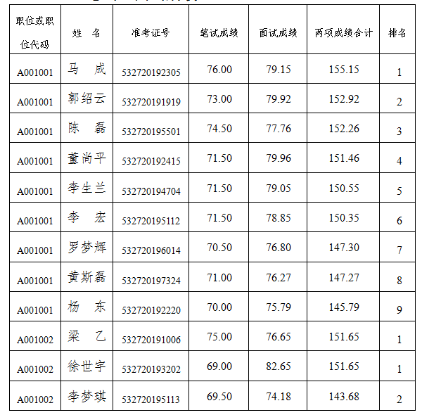 注:若考生對(duì)本人成績(jī)有異議,可于2020年2月17日前向中共普洱市委辦公室提出查分申請(qǐng)。由中共普洱市委辦公室委托受邀對(duì)本次遴選工作進(jìn)行監(jiān)督的市紀(jì)委市監(jiān)委駐市委辦公室紀(jì)檢監(jiān)察組組長(zhǎng)進(jìn)行查分,并將結(jié)果告知。