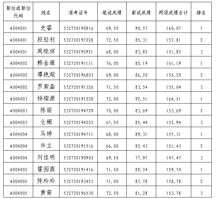 根據(jù)《普洱市中級人民法院2019年公開遴選公務(wù)員公告》(第1號),普洱市中級人民法院已完成筆試、面試、經(jīng)歷業(yè)績評價工作?,F(xiàn)將有關(guān)事項公告如下: