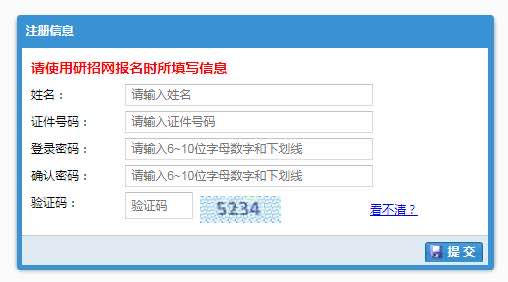 考生登錄網(wǎng)址http://61.166.241.249:8000/ASPX/Student/StuLogin.aspx,點(diǎn)擊“注冊(cè)”按鈕填寫注冊(cè)信息,所填寫信息須與“中國(guó)研究生招生信息網(wǎng)”研招報(bào)名時(shí)填報(bào)信息一致,否則將無法注冊(cè)登錄。注冊(cè)信息填寫完成后點(diǎn)擊提交,系統(tǒng)自動(dòng)跳轉(zhuǎn)到登錄頁。
